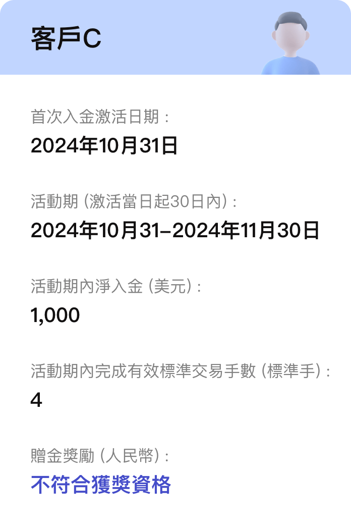 2. 本次活動僅適用於年滿18歲或以上,且所在地區為大中華地區(包括中國、澳門及台灣)的新客戶或已註冊且未入金的客戶參加。