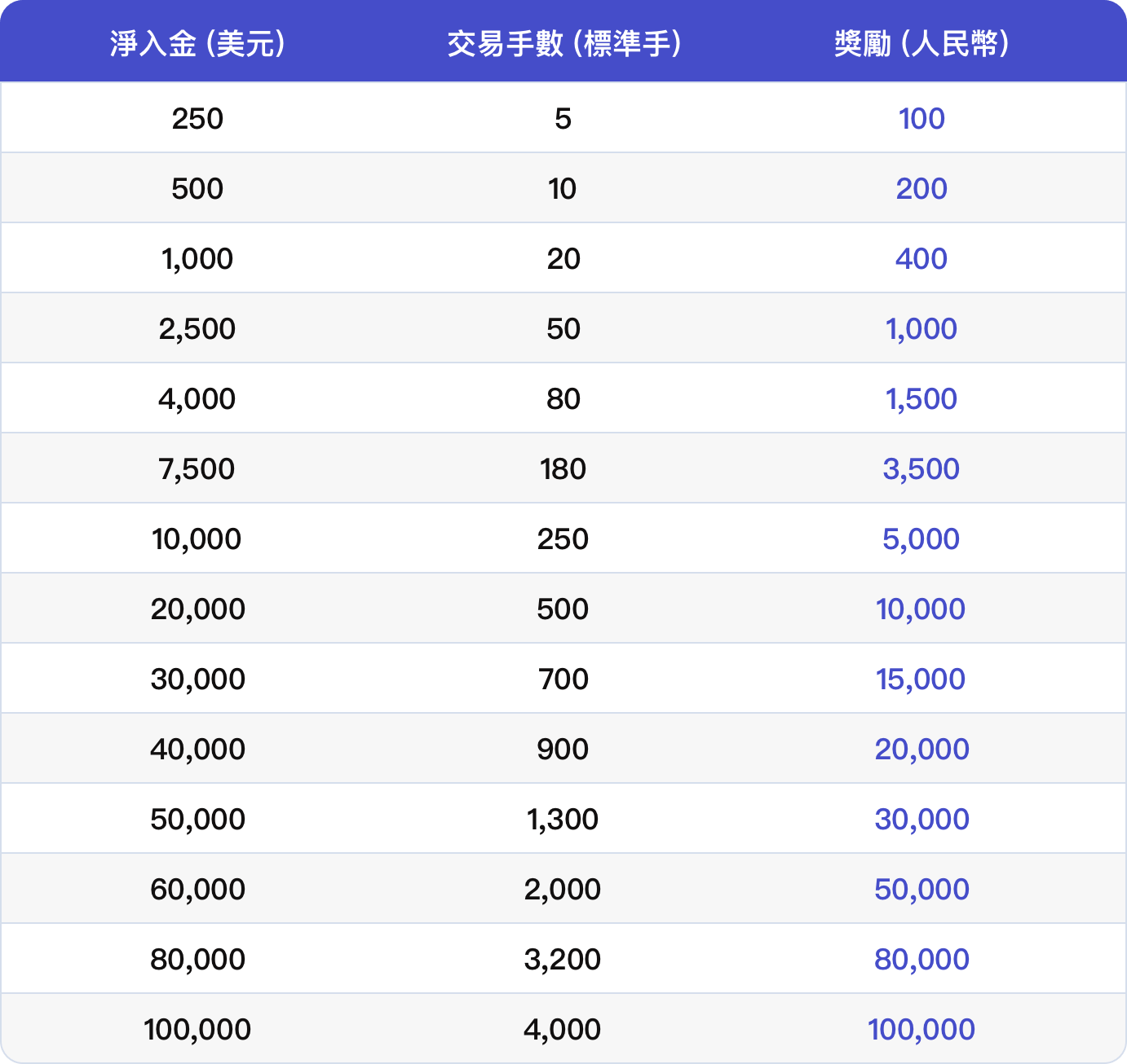 8. 客戶於活動期間內(包括首次激活當日起計算30日內)並沒有出入金的次數限制,但需填妥活動頁面內的参加表格並滿足活動頁面內的淨入金及交易手數要求,方可符合對應等級的領獎資格。