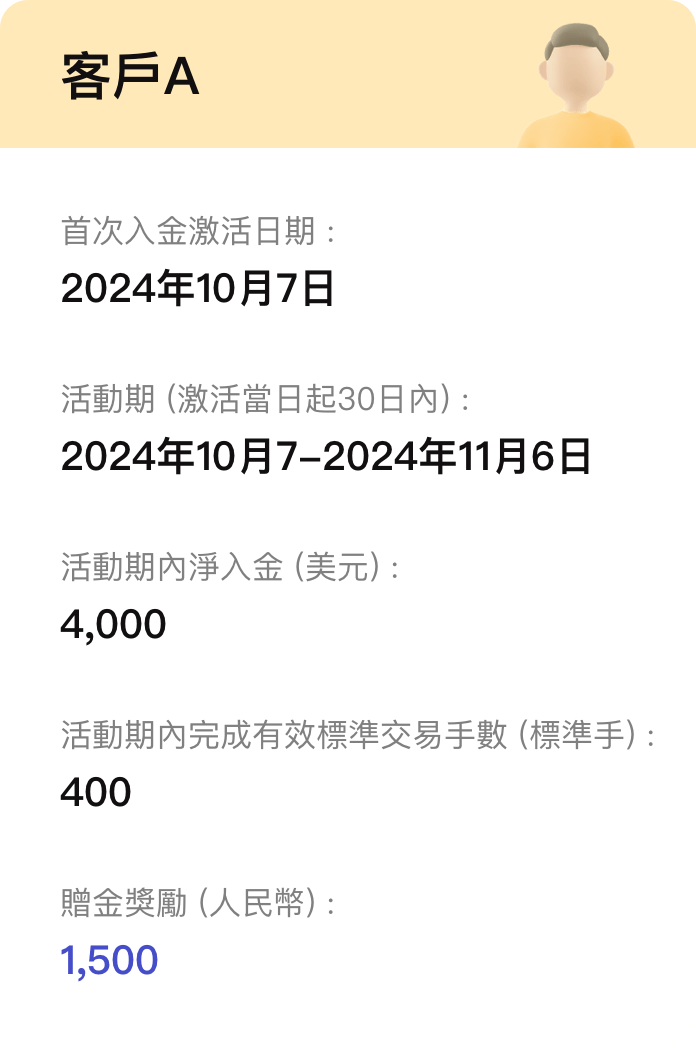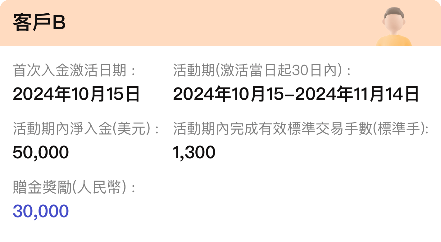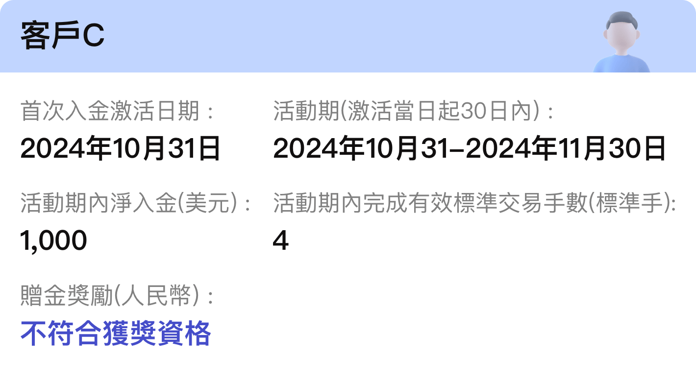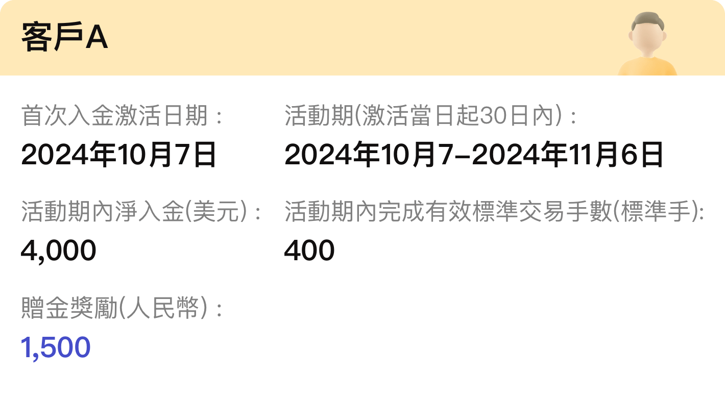 由激活當日起計算30日內同時符合活動頁面的淨入金及交易手數要求
