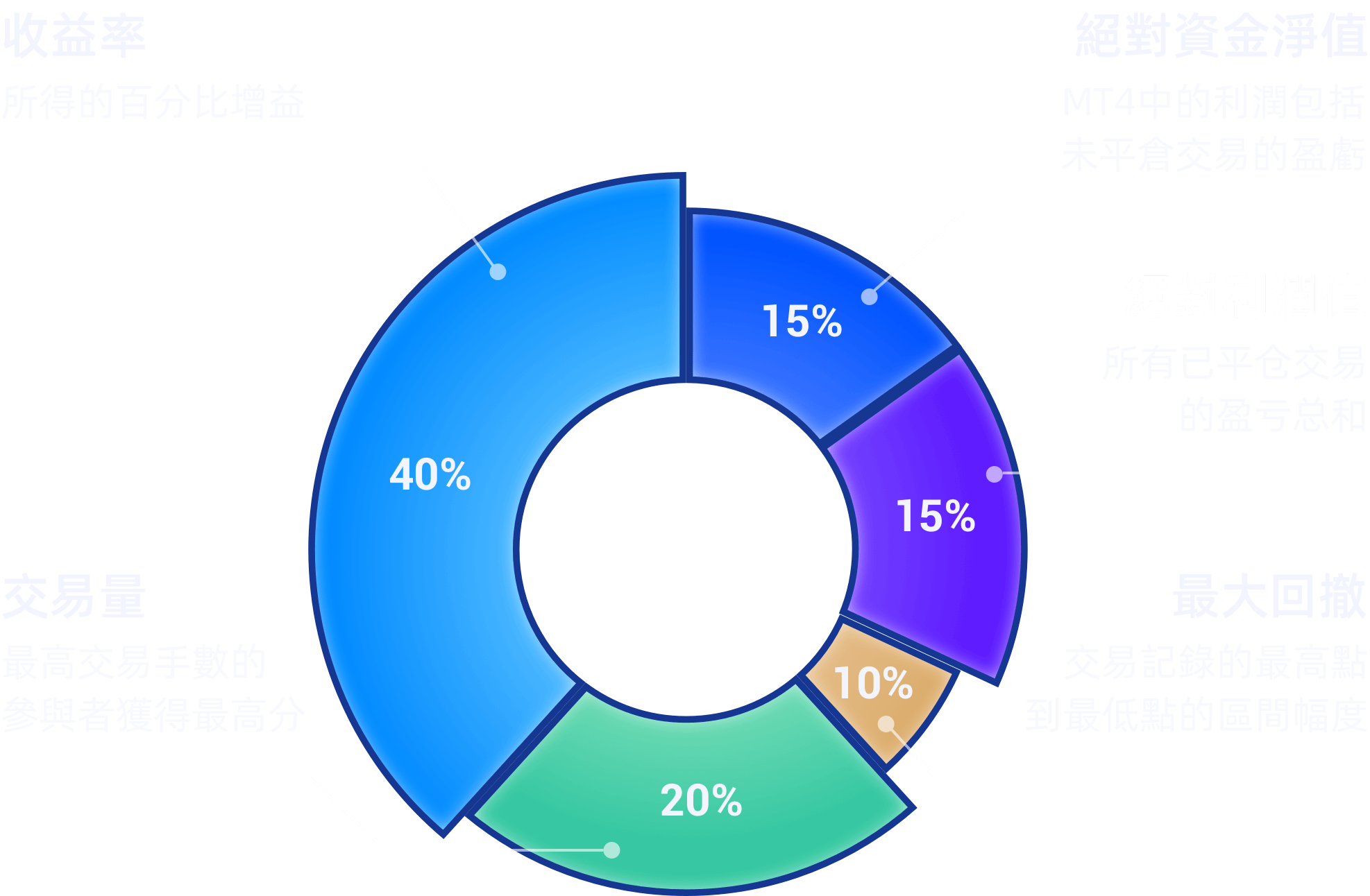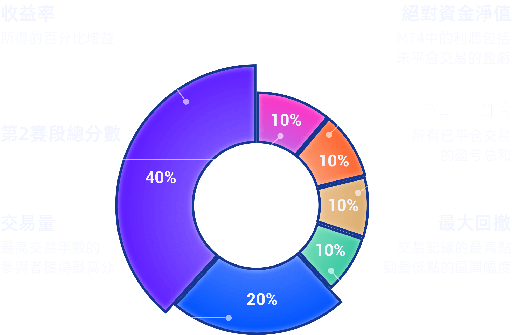 7.參與者的交易手數(包括賽段與賽段之間的交易量)與獎金池獎金掛勾,累積的交易手數越多,獎金池的最終獎金會越高。