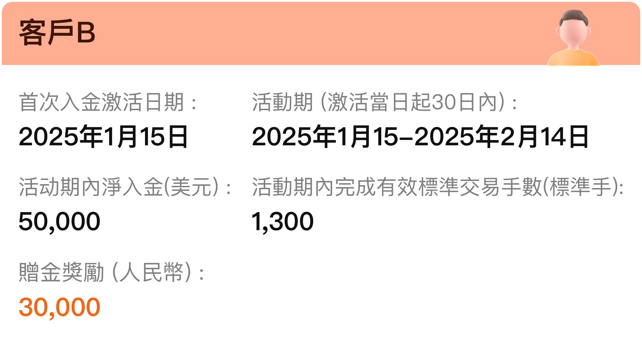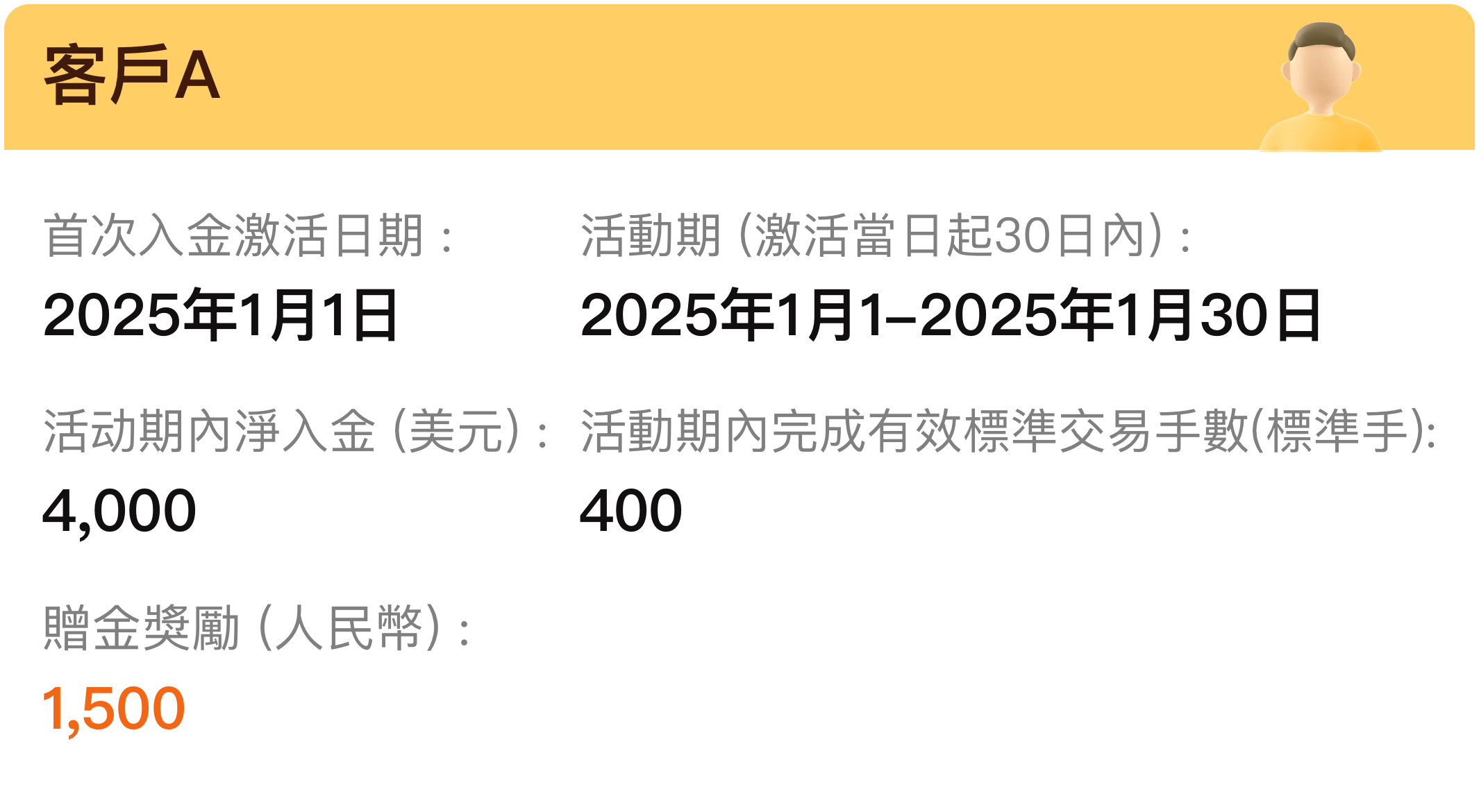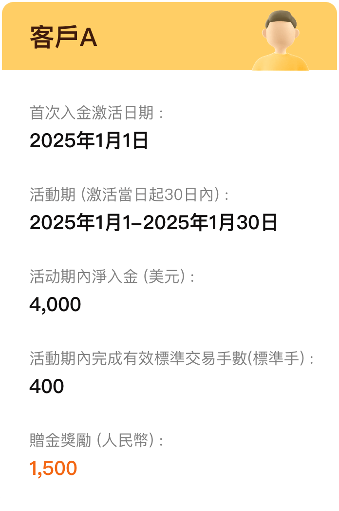 1. 本次活動不可與其他新客户活動同時疊加參與。